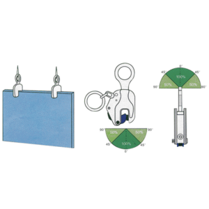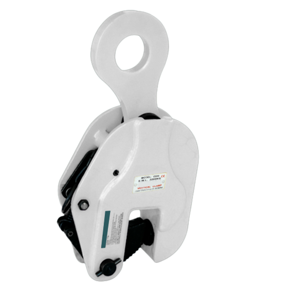 (2) Standard design clamp for vertical lifting of steel plates and steel structures.’  The spring-loaded tightening lock mechanism assures a positive initial clamping force.